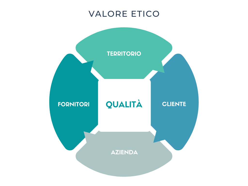 Il prodotto e/o servizio, il processo, le persone, la sfera manageriale e quella individuale sono tutti elementi d’impresa da declinare secondo il valore etico della qualità. Per il prodotto e/o servizio lo scopo diventa evitare il superfluo impiegando la tecnologia al servizio delle persone e fare bene le cose essenziali, costantemente e in modo sistematico, dando seguito alle aspettative del cliente secondo la promessa fatta.
